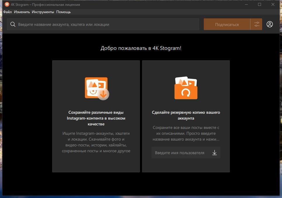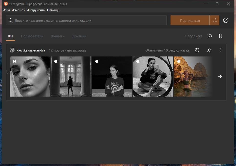 Не требуется (инсталлятор уже пролечен)4K Stogram - это программа для просмотра и скачивания файлов из Instagram для PC. Скачивайте фотографии, видео, stories из публичных и приватных аккаунтов ваших друзей, выполняйте резервное сохранение своих постов и импортируйте список Instagram-подписок.