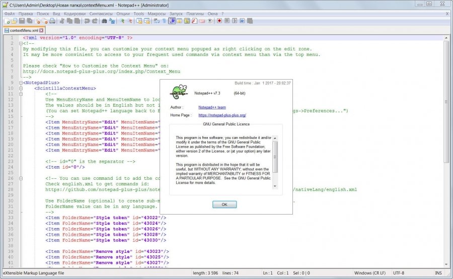 Не требуется (freeware)Notepad++ - это бесплатный редактор текстовых файлов (замена стандартного Блокнота) с поддержкой синтаксиса большого количества языков программирования, ориентирован для работы в операционной системе MS Windows.