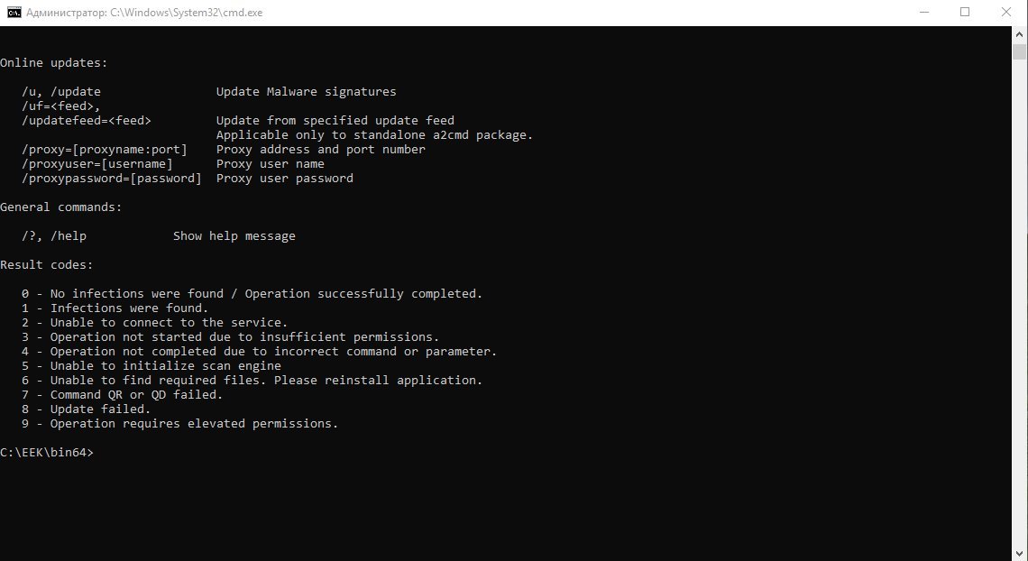 Включен сканер командной строки Commandline Scanner