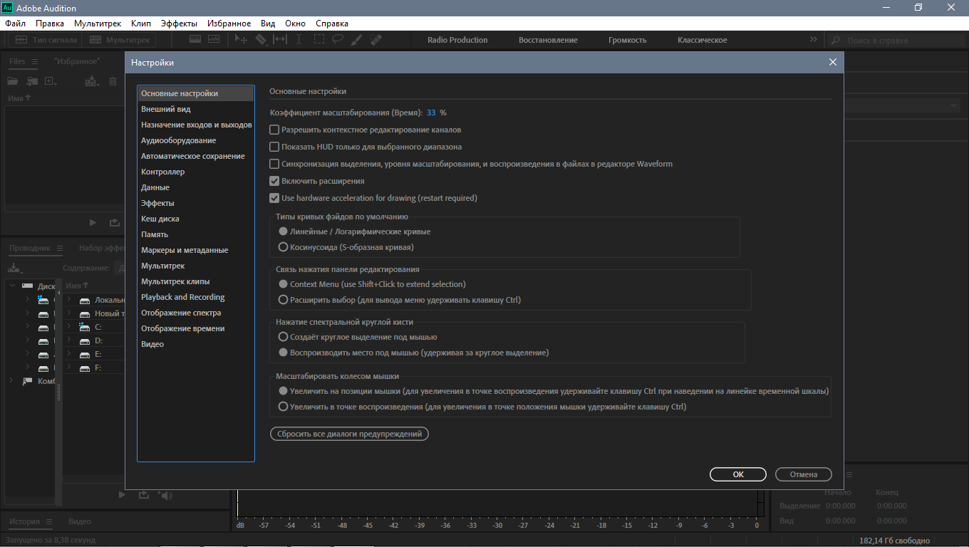 Особенности:Создавать высококачественную аудио-продукцию - Adobe Audition поддерживает файлы с глубиной оцифровки до 32-бит и частотой дискретизации более 192 КГц, и запись на любые носители (включая магнитную пленку, CD, DVD или DVD-Audio диски). Вся обработка выполняется в 32-битном разрешении, что позволяет достичь высоко профессиональных результатов.