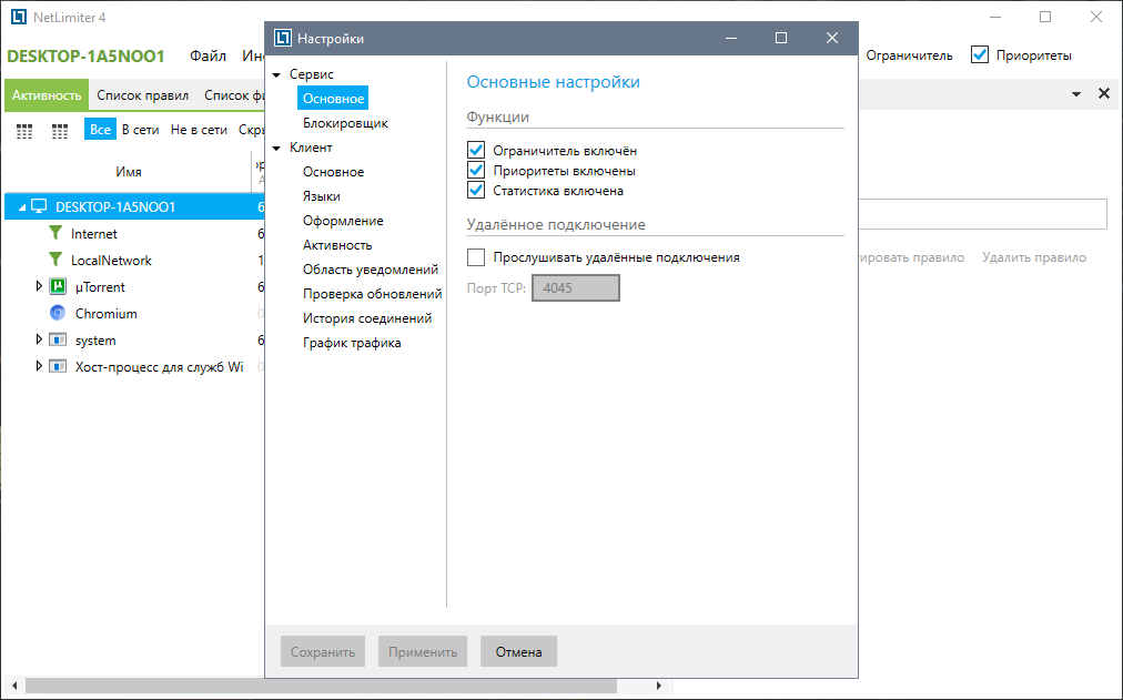 Ограничение максимальной скорости передачи данных для любого приложения, запущенного на ПК.