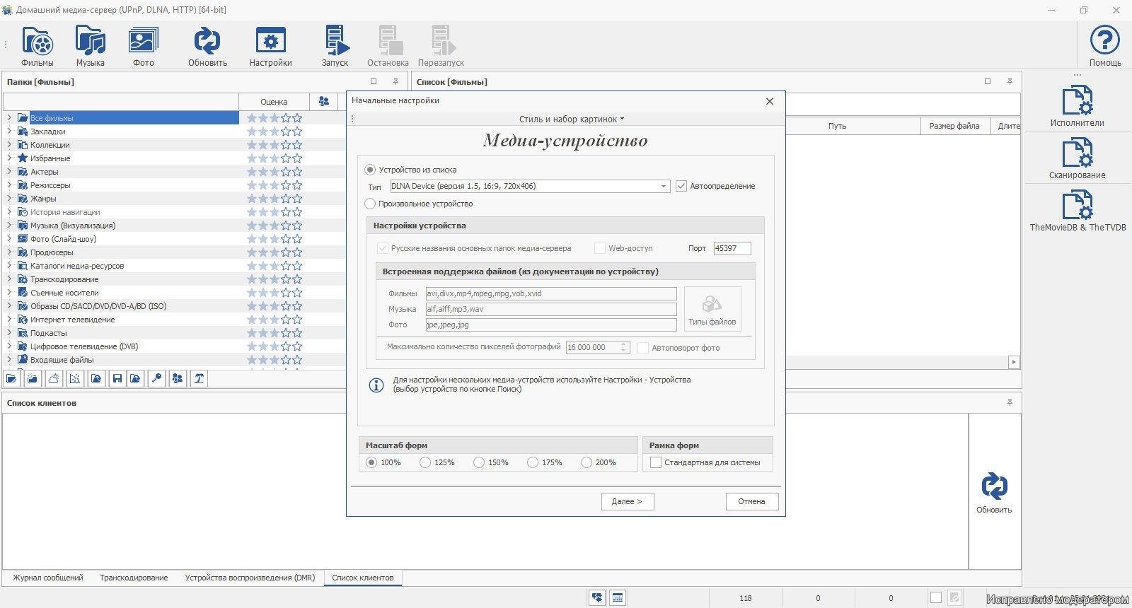 Программа поддерживает Web-навигацию с HTML5-плеером для устройств без DLNA (UPnP) поддержки.