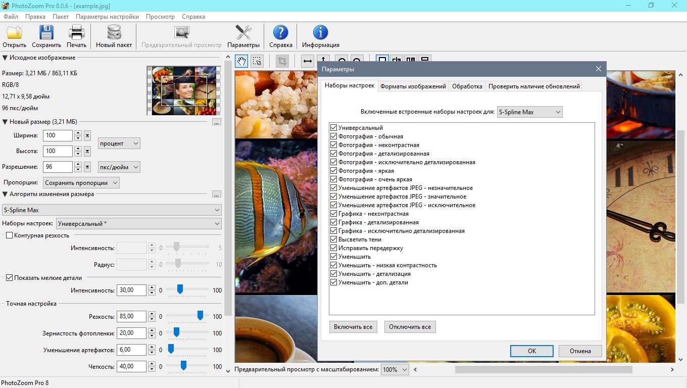 Особенности:» Увеличение фотографий с помощью технологии S-Spline Max