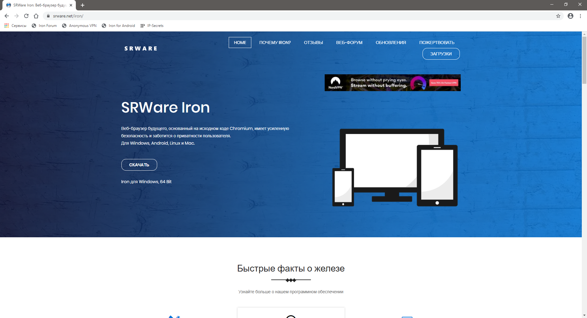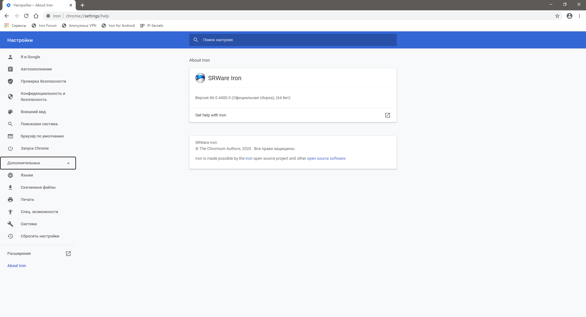 Не требуетсяSRWare Iron - безопасный, удобный и быстрый в работе браузер на основе исходного кода проекта Chromium. Обладая интерфейсом и многими функциями, знакомыми пользователям по Google Chrome. SRWare Iron отличается своей политикой по отношению к безопасности и конфиденциальности. В нем отсутствуют какие-либо «следящие» модули, в чем неоднократно обвинялся браузер от Google.
