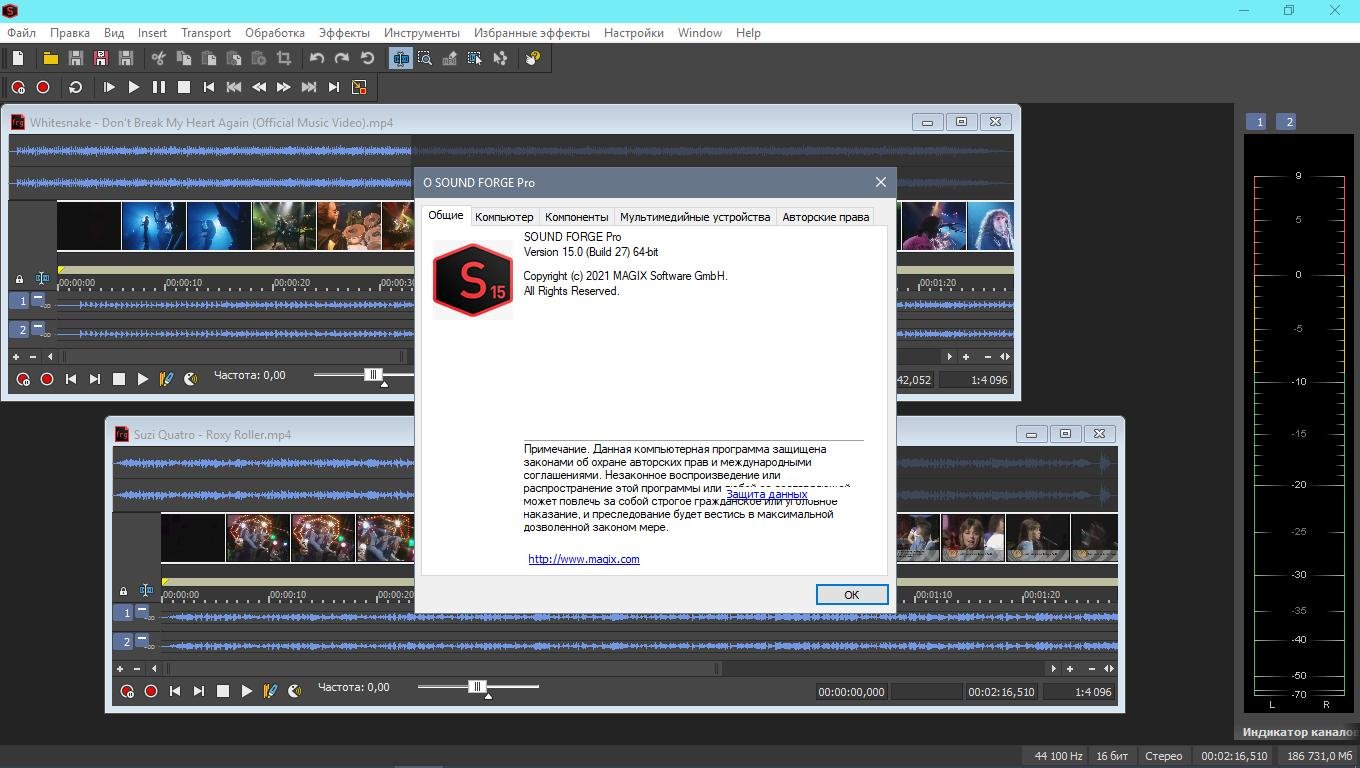 Не требуетсяОписание: Программное обеспечение MAGIX Sound Forge Pro представляет собой профессиональную систему создания, мастеринга и записи аудиотреков, дизайна и восстановления звука. В состав MAGIX Sound Forge Pro входят мощные инструменты обработки музыкальных файлов (в том числе сэмплов), добавления различных аудиоэффектов, конвертирования звуков на уровне битов и из одного формата в другой, кодирования данных, редактирования моно-, стерео- и многоканального звука, записи музыки и многого другого. Продукт MAGIX Sound Forge Pro, являясь одним из ведущих в своем секторе, востребован продюсерами и режиссерами в звукозаписывающих студиях по всему миру. В то же время простой интерфейс программы позволяет работать с ней и пользователям-любителям.
