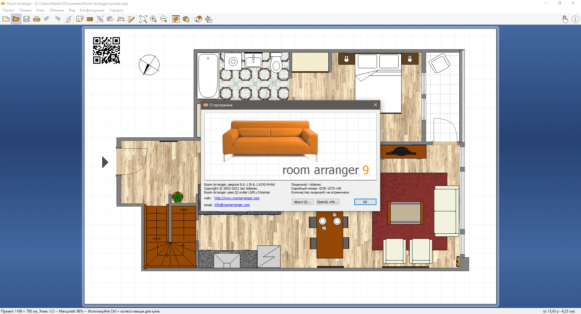 Не требуется (инсталлятор уже пролечен)Room Arranger - программа специально предназначенная для создания, разработки, анализа интерьеров или дизайна помещений.Она будет реально полезна и поможет вам, если вы решили перенести стены, сделать перепланировку или простую перестановку и размышляете, что и куда передвинуть.Room Arranger позволяет визуально наглядно передвигать, вращать, менять размеры и цвет, а также самому создавать предметы интерьера, которых еще нет у вас в наличии, но вы хотели бы их иметь.После всех манипуляций можно посмотреть результат в 3D варианте.