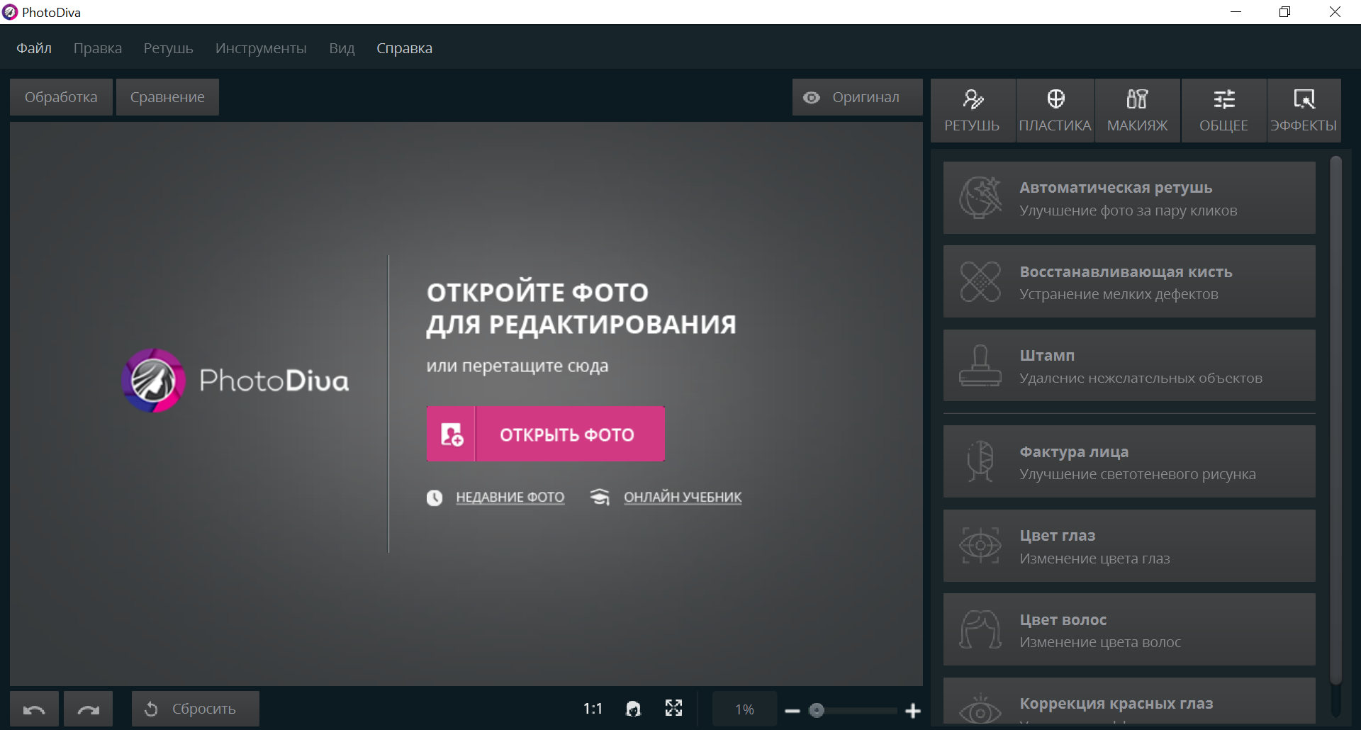 Особенности:• Эффектная бьюти ретушь за пару кликов. Вам больше не придется прятаться от камеры из-за внезапно вскочившего прыща или простуды на губах. В PhotoDiva вы сможете быстро отретушировать портреты: