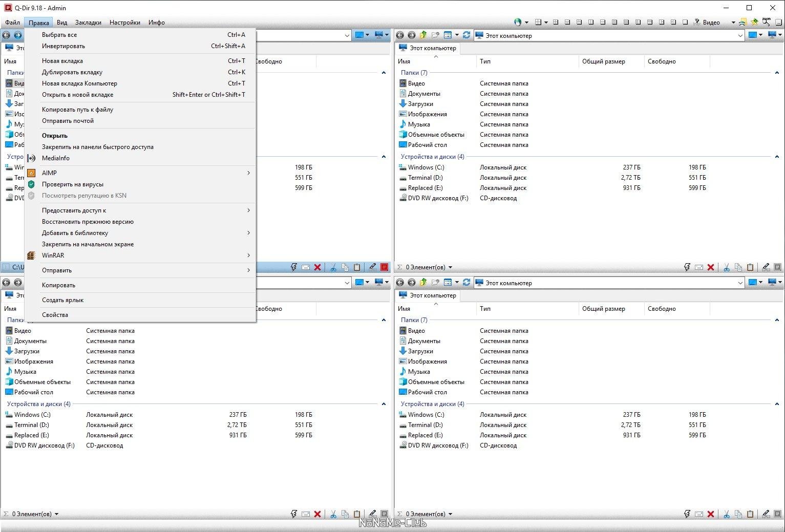 Не требуетсяОписание: Файловый менеджер с оригинальным четырехпанельным интерфейсом и широкими возможностями по работе с файлами. Работает с любого съемного устройства. Многоязычный интерфейс.Q-Dir позволяет получать быстрый доступ к часто используемым папкам с помощью ссылок "Quick-Link's", поддерживает функцию drag&drop, работает с буфером обмена, поддерживает следующие типы папок: ZIP, FTP, сетевые, системные, ярлыки. Позволяет просматривать изображения, имеет встроенную "лупу". Может выделять в проводнике цветом различные типы файлов, фильтровать файлы и многое другое. Возможность экспорта в XLS, CSV, TXT, HTML. Имеет специальный режим предварительного просмотра файлов.