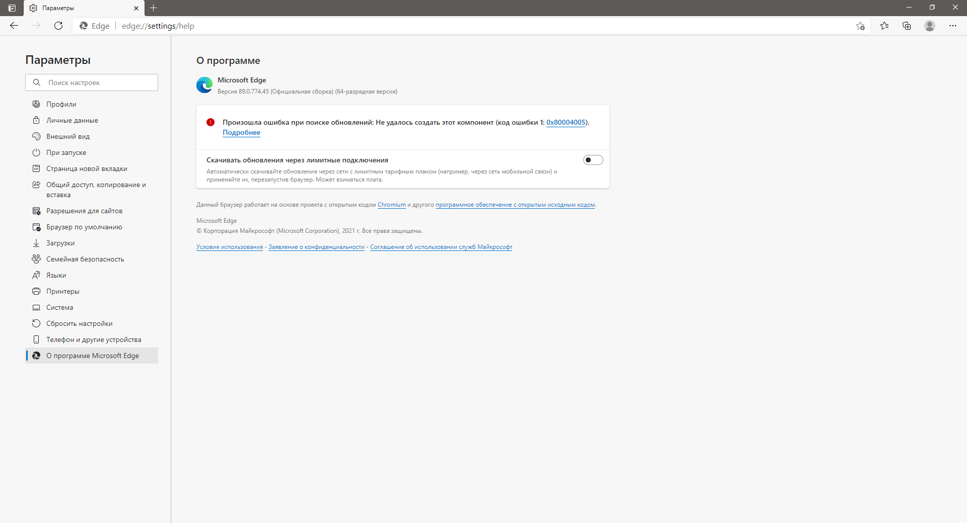 Microsoft Edge Год выпуска: 2021