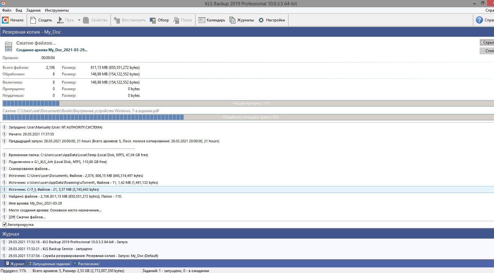 В комплекте (замена файлов)KLS Backup - мощная программа, предназначенная для создания резервных копий данных и последующей их синхронизации, а также для очистки диска. Может создавать резервные копии файлов и папок с локальных или сетевых дисков и FTP-серверов, записей реестра, баз данных MySQL, почтовых баз (Outlook, Oulook Express, Mozilla, Thunderbird), настроек Windows и различных программ. Данные могут сохраняться как в обычном, так и в сжатом и зашифрованном виде, в архивах (Zip, Zip64, 7z или SQX). Резервные копии можно сохранять на локальном или удаленном (сетевом) диске, на FTP сервере и CD/DVD дисках.