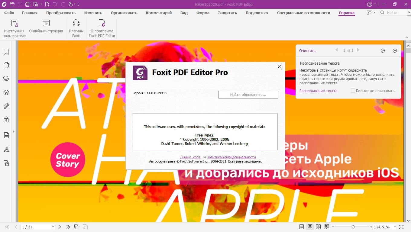 В комплекте (замена файлов)Foxit PDF Editor Pro (ранее известный как Foxit PhantomPDF Business) - является профессиональным программным решением для создания PDF файлов. Помимо основной функции, утилита обладает большим количеством дополнительных возможностей, таких как шифрование, преобразование и встроенный PDF Editor. Программа может похвастаться интуитивно понятным интерфейсом, который позволяет производить необходимые действия буквально «на ходу». Foxit PDF Editor Pro имеет возможность добавить несколько файлов в список и конвертировать их в PDF одновременно. Утилита также «умеет» добавлять и удалять страницы в документе, менять ориентацию страницы и многое другое. Приложение включает встроенный текстовый редактор, позволяющий вставлять текст, изображения и графические объекты. На все документы можно установить пароль во избежание несанкционированного доступа