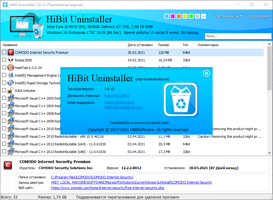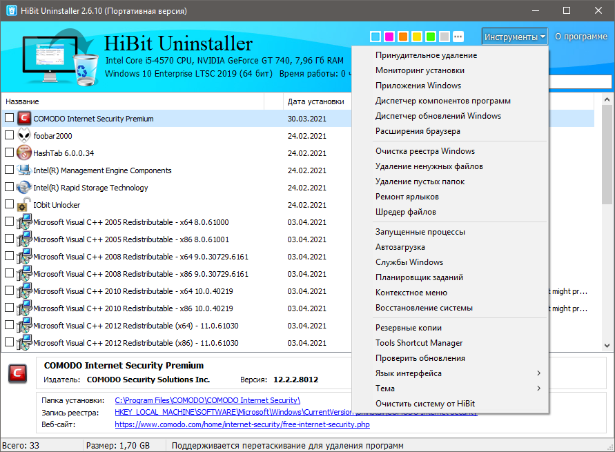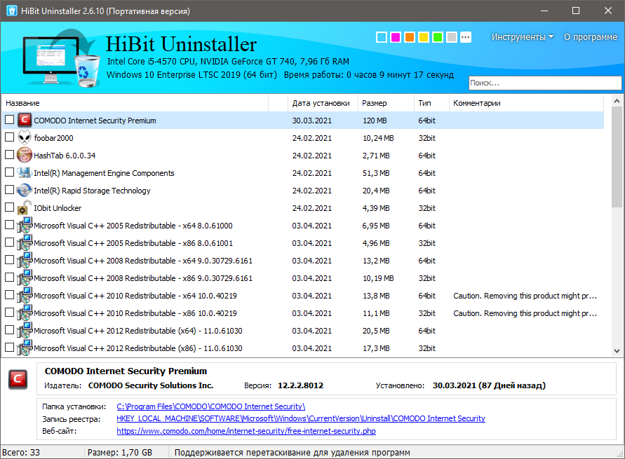 Не требуетсяHiBit Uninstaller - идеальное решение для удаления программ Windows, которое позволяет вам деинсталлировать программы быстро и полностью, используя простой и дружественный к пользователю интерфейс. Так же, в программе имеется множество средств для очистки и управления вашей системой.Удобной функцией в HiBit Uninstaller является удаления программ посредством менеджера Windows Store Apps. Многие интегрированные приложения в современной системе просто не востребованы многими пользователями. После деинсталляции будет проведено мощное сканирование на наличие остатков и хвостов, а при желании можно выбрать расширенные дополнительное сканирование.