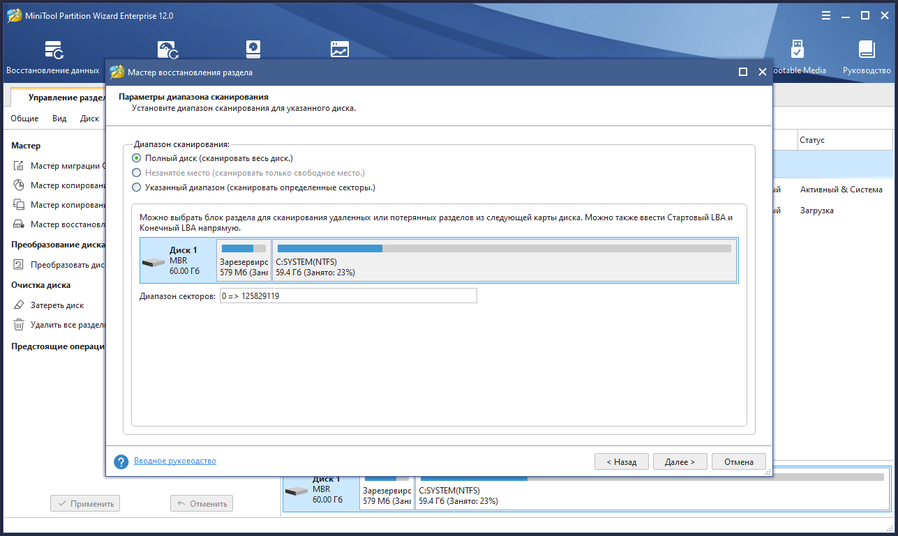 • Опция Карта диска позволяет визуально отображать структуру разделов и жестких дисков.