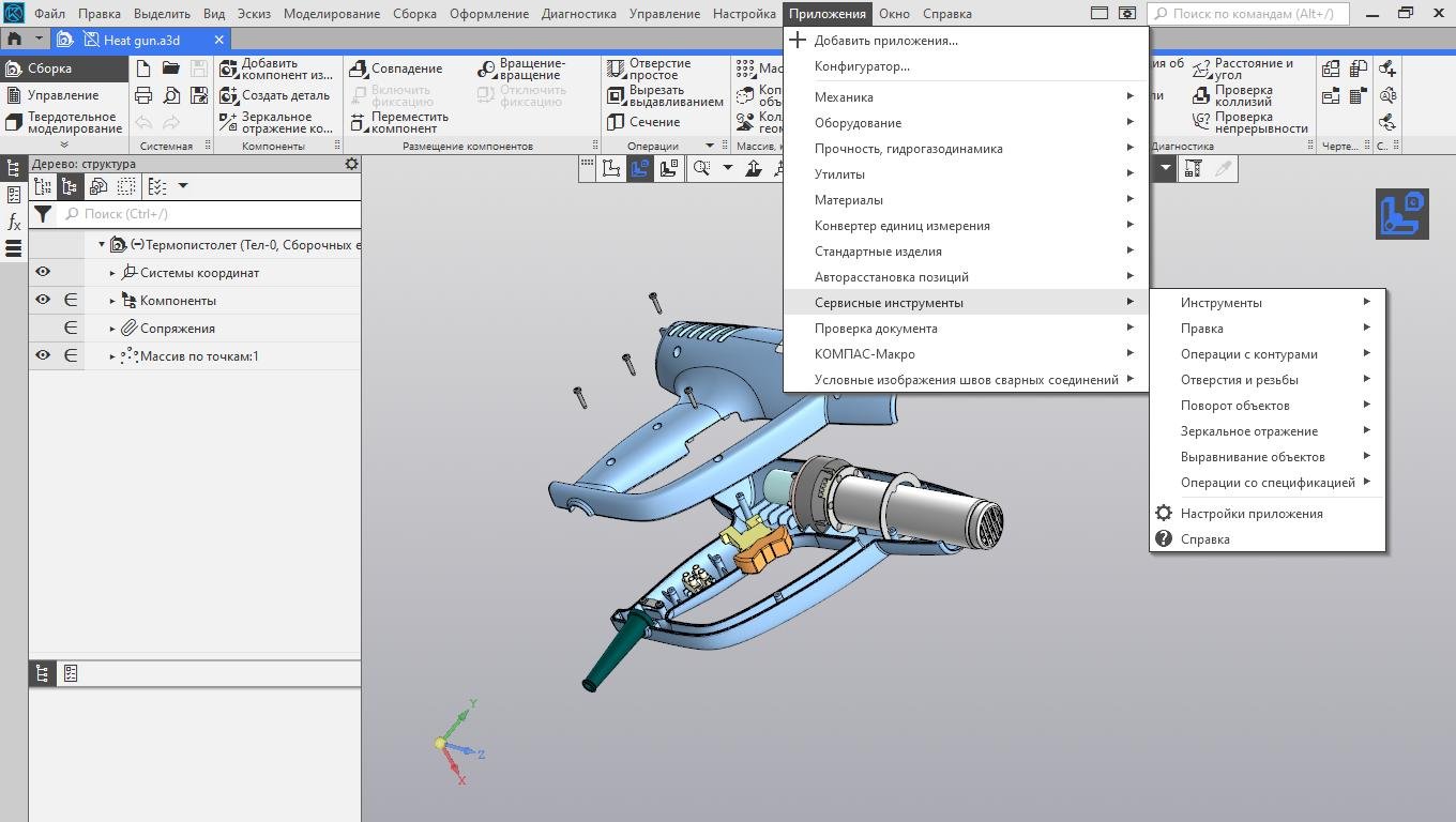 развитый инструментарий трёхмерного твердотельного, поверхностного и параметрического моделирования;