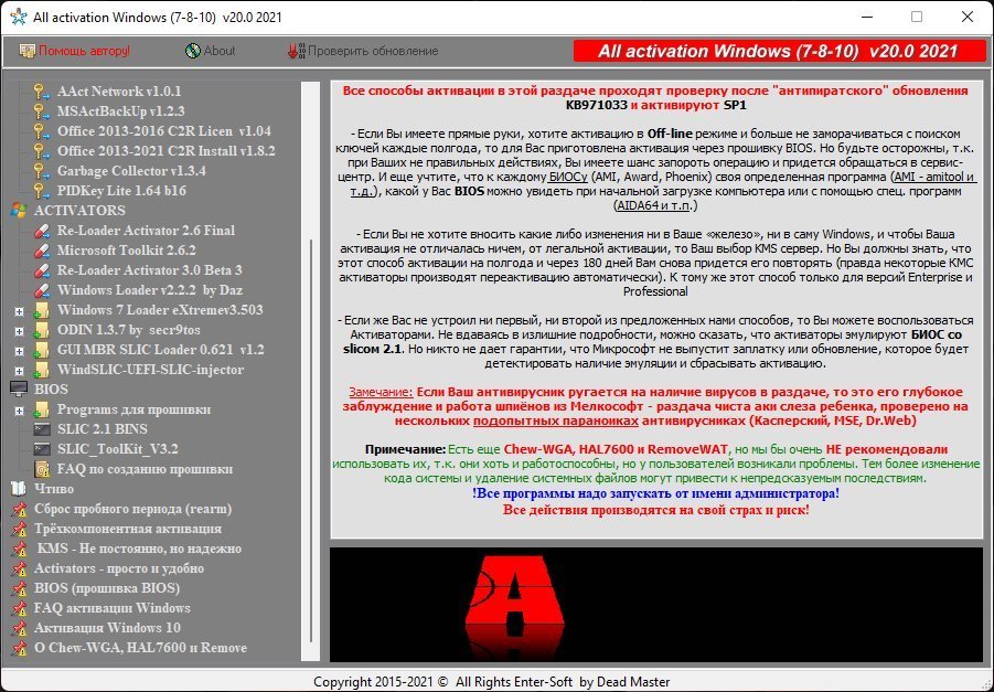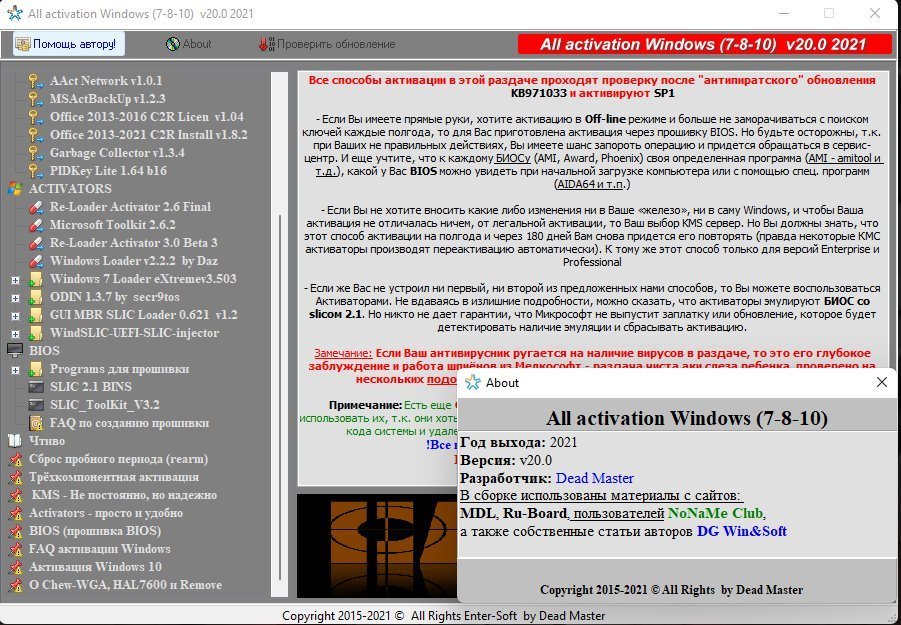 Активаторы все / All activation WindowsГод выпуска: 2021