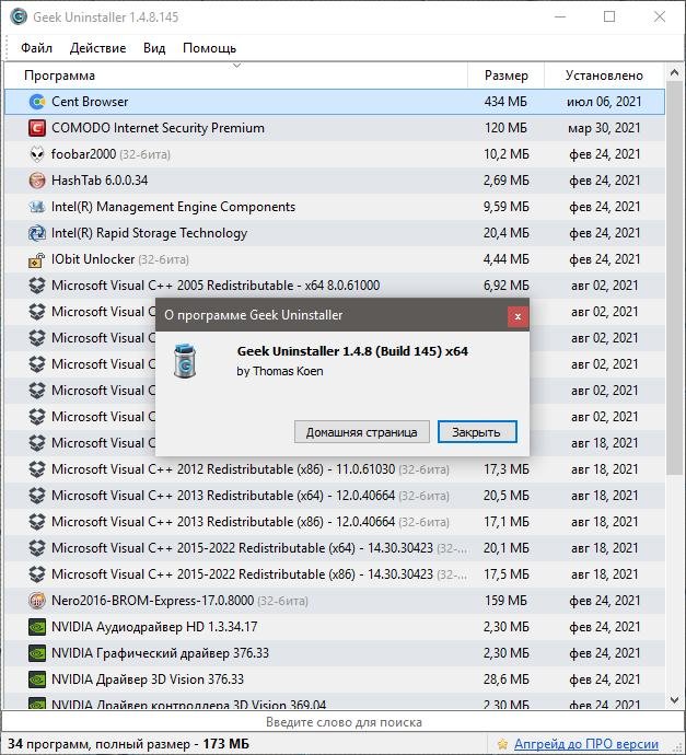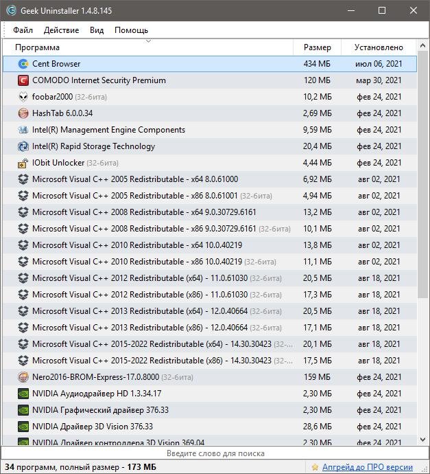 Не требуетсяGeek Uninstaller - удобный, маленький и надежный, не требующий установки деинсталлятор, разработанный, чтобы помочь пользователям произвести деинсталляцию программ, установленных в системе. В отличие от других деинсталляторов, программа осуществляет глубинные процессы сканирования и очищает ваш ПК от того, что осталось после удаления.