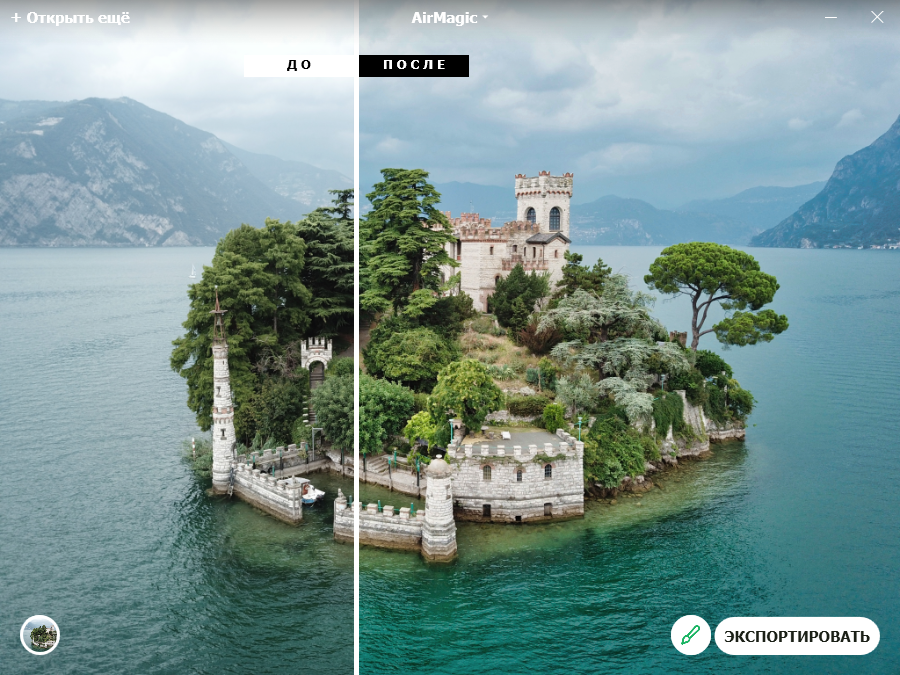 Дымка может скрывать важные детали и часто встречается на фотографиях с дронов. AirMagic удаляет дымку автоматически.