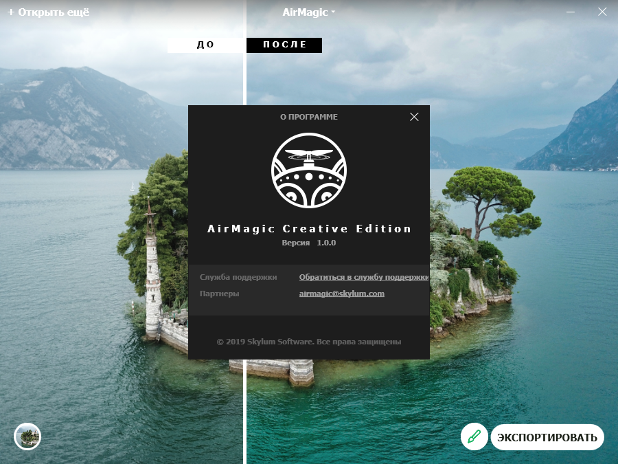 Не требуетсяAirMagic - полностью автоматизированное программное обеспечение для редактирования фотографий, предназначенное для аэрофотосъемки. Приложение автоматически улучшает изображения, используя искусственный интеллект и передовые технологии улучшения изображений. Программа способна работать в качестве самостоятельного приложения, а также в виде плагина для Photoshop и Lightroom. Программа поддерживает различные форматы изображения, включая RAW.