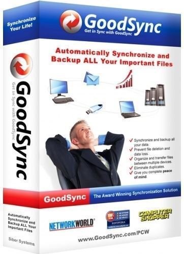 Не требуется (инсталлятор уже пролечен)GoodSync - программа из серии высоконадежного, удобного и простого в использовании программного обеспечения от компании Siber Systems - разработчика RoboForm. Программа автоматически синхронизирует и делает резервные копии документов, фотографий, музыкальных файлов, электронных писем. Синхронизация производится между любыми носителями, как подключенными непосредственно к компьютеру, так и через локальную сеть и Интернет.