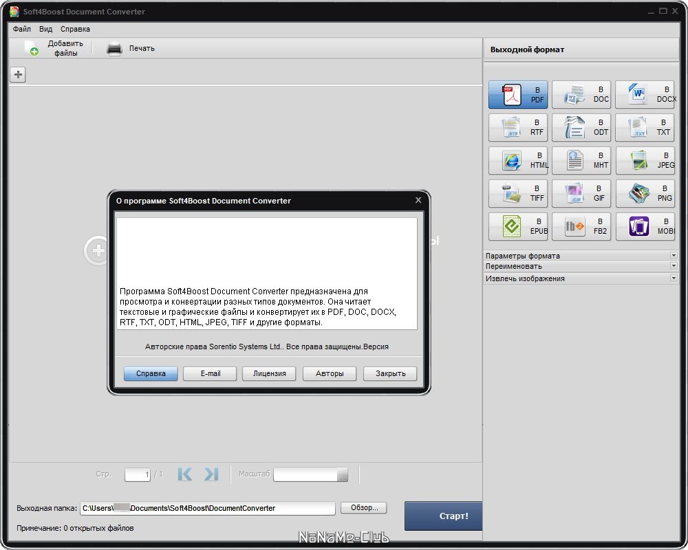 Особенности:Интерфейс программы интуитивно понятен и удобен: добавили файл, определили формат преобразования, папку сохранения и все - быстро и просто. При этом доступна опция пакетной обработки, если надо преобразовать сразу несколько файлов за один раз. Из дополнительных возможностей можно выделить добавление пароля к PDF-документам, переименовывание полученных файлов и извлечение изображения из документа с возможностью сохранения.