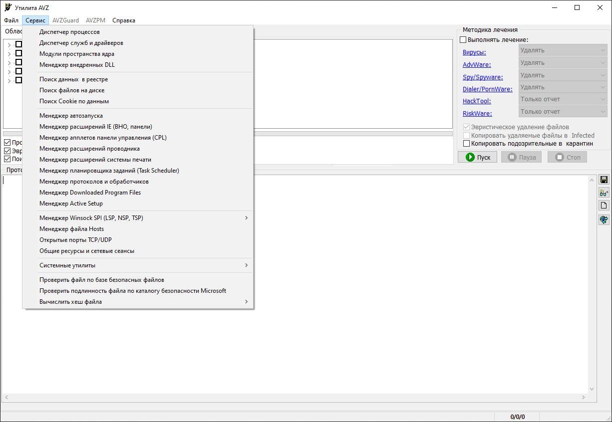 • Система AVZGuard. Предназначена для борьбы с трудноудалимыми вредоносными програмами, может кроме AVZ защищать указанные пользователем приложения, например, другие антишпионские и антивирусные программы.