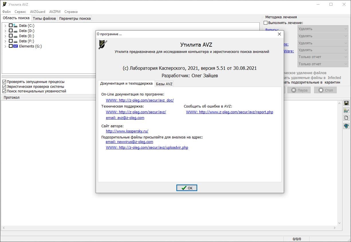 Не требуетсяAVZ - Бесплатная быстро работающая антивирусная утилита. Включает в себя собственно AVZ и дополнительные утилиты AVZGuard/AVZPM/BootCleaner.Основное назначение - обнаружение и удаление SpyWare и AdWare модулей, а также Dialer (Trojan.Dialer), троянских программ, BackDoor модулей, сетевых и почтовых червей, TrojanSpy, TrojanDownloader, TrojanDropper.По сути, AVZ является аналогом популярной программы Ad-aware (естественно, со своими особенностями).Дополнительные опции включают в себя эвристическую проверки системы, встроенную систему обнаружения Rootkit, анализатор Winsock SPI/LSP настроек, встроенный диспетчер процессов, сервисов и драйверов, анализатор открытых портов TCP/UDP, детектор клавиатурных шпионов (Keylogger) и троянских DLL, работающий без использования сигнатур (используется оригинальный нейроэмулятор, который позволяет производить исследование подозрительных файлов при помощи нейросети).