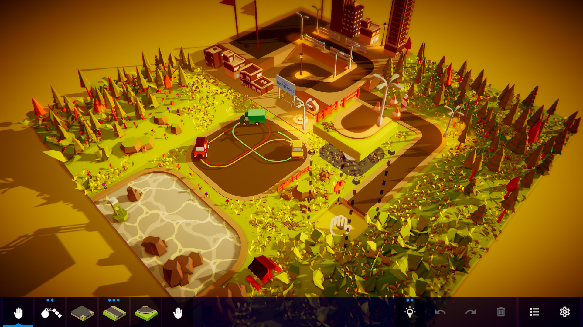 Инди-проект получился простым в плане управления и максимально затягивающим. Вам дается ограниченный набор инструментов и дело остается за малым: найти решение текущей проблемы. Игра разделена на несколько уровней, где при каждой последующей миссии повышается сложность и количество объектов. Например, вам придется учитывать не только шоссе для автомобиля, но и водный канал для корабля, а после подключатся другие действующие лица, такие как люди, дикие животные и поезда.