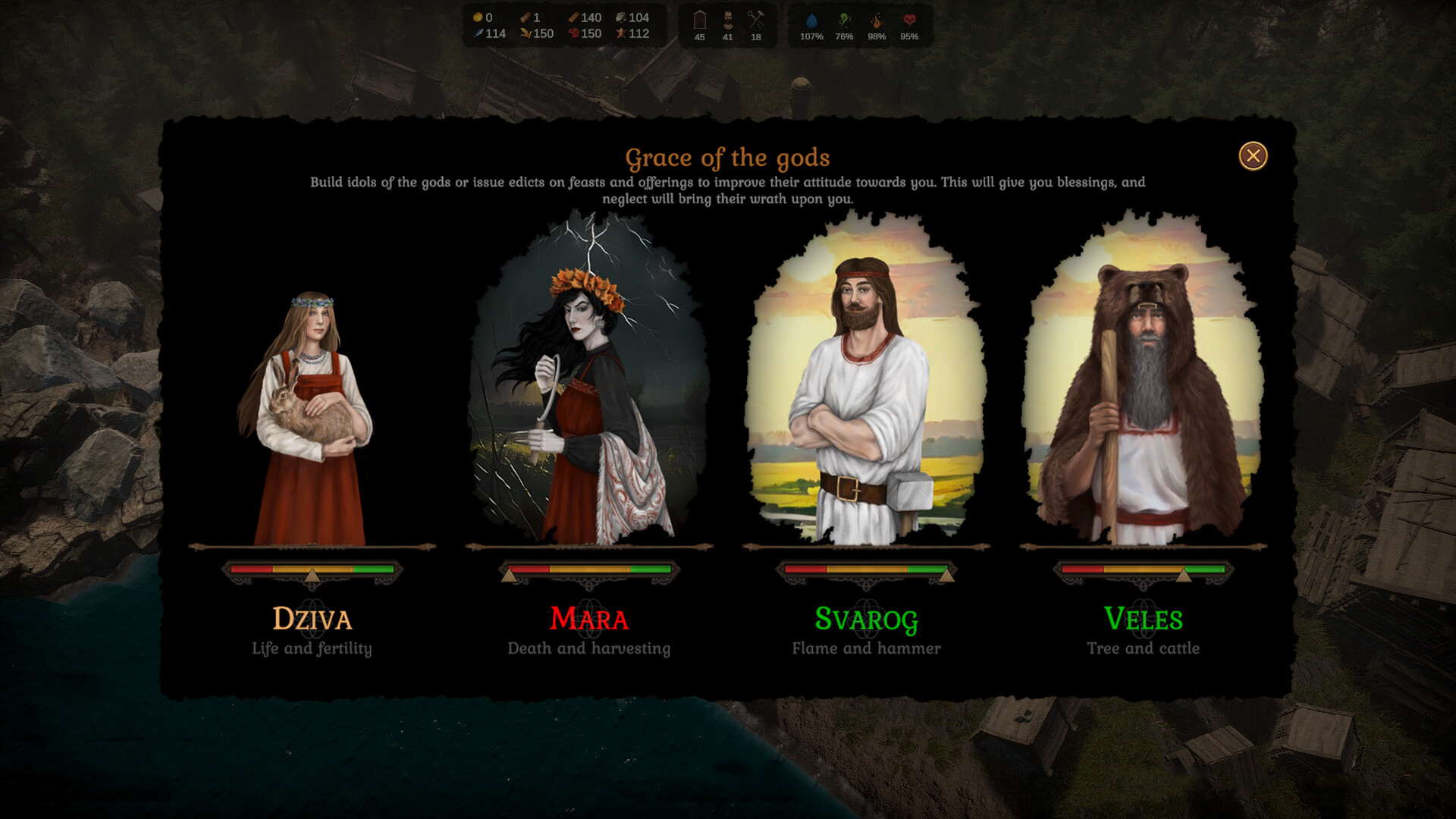 Игроки столкнутся с живым миром. Он постоянно меняется и подготавливает все новые испытания для ваших людей. Столкнитесь с эпидемиями неизвестных болезней включая чуму, с голодом и крысами, которые уничтожают последние запасы зерна, а также с погодными условиями и дикими животными, решившими забрести на территорию города. Говорят, что все невзгоды из-за разгневанных богов, поэтому позаботьтесь о храмах и соответствующих традициях, связанных с языческими богами.